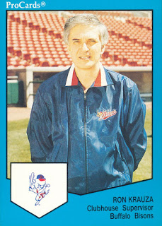 Flying well under the radar is this variation of the 1989 ProCards AAA set, or sets. It is that last bit that is significant for in 1989, ProCards issued it's blue Triple-A cards in two different formats. The primary method of distribution, as they had been using since 1986, was to issue team sets to be sold or given away at minor league ballparks. This version of the cards was made available sometime in mid-1989, and as such featured the players' statistics through the end of the 1988 season. This version of the card sometimes featured local sponsors logos on the back.